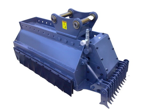 バックホウアタッチメント式ハンマーナイフモア。最大回転速度までの立ち上がりが僅か1.8秒、動力源であるバックホウの油圧、油量を最大限に生かす、高伝率で高効率なハイパワーを実現、ベルトレスによりテンション調整や交換が不要なメンテナンスフリー。